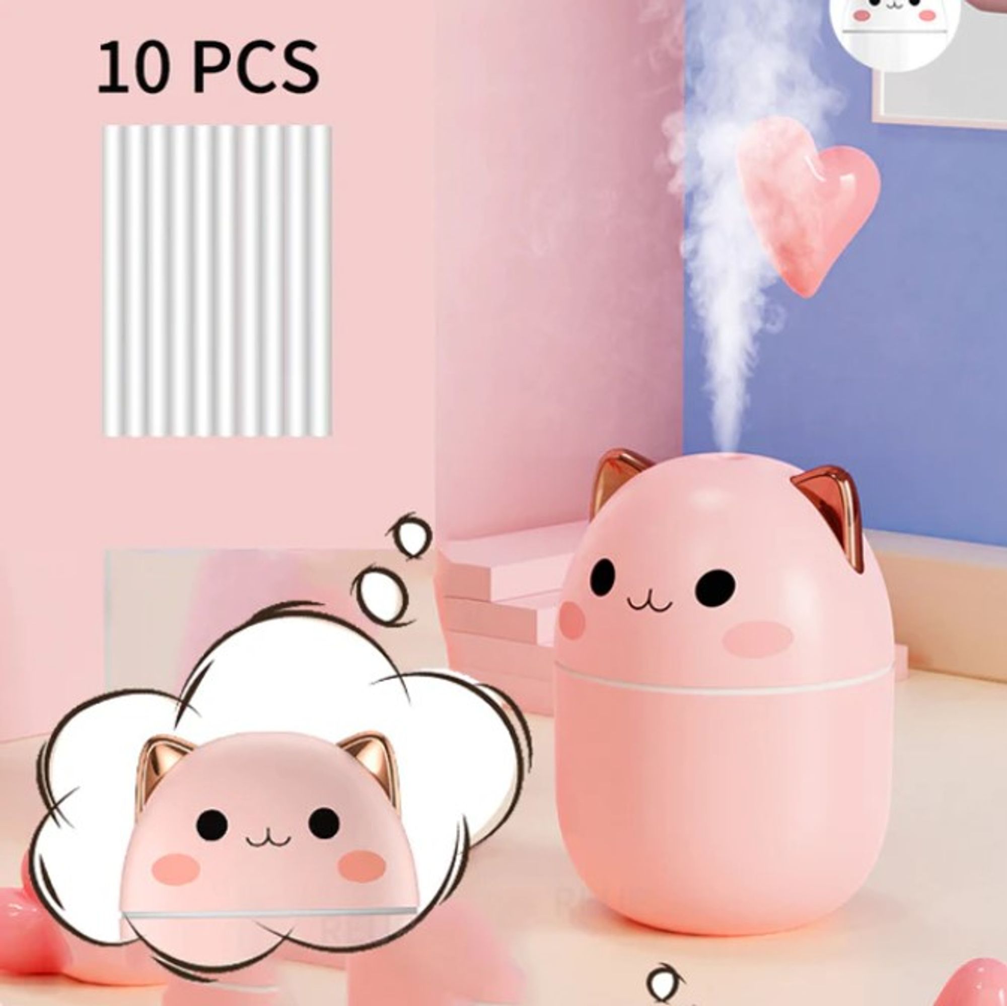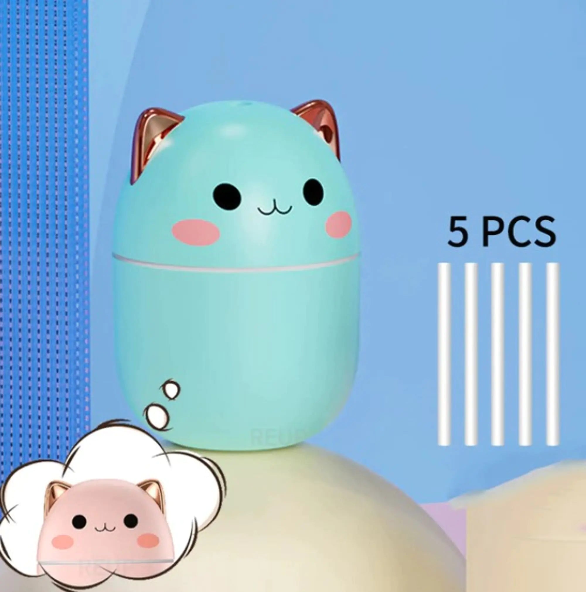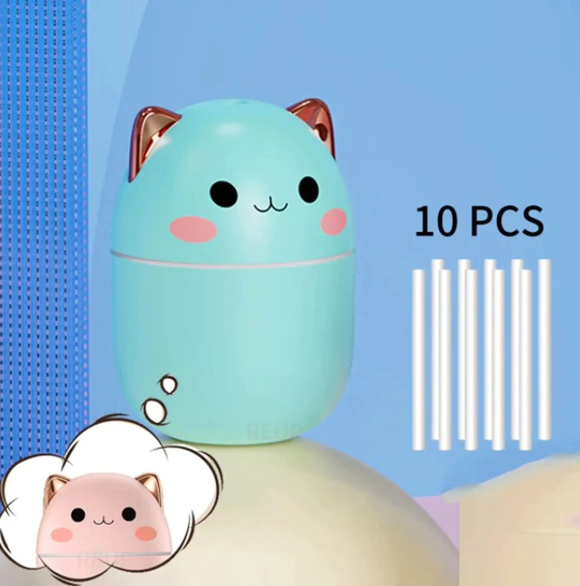 Enjoy the convenience of the Cute Cat Humidifier 250ml. Its compact size and efficient operation make it perfect for smaller spaces like bedrooms, desks, or nurseries, ensuring a comfortable atmosphere wherever you go.