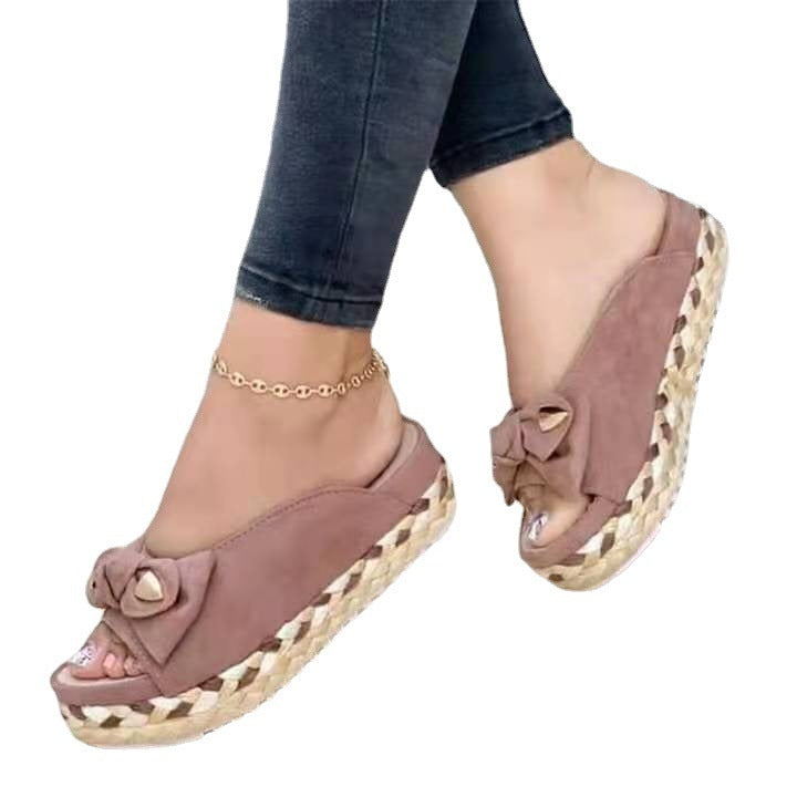 Discover the perfect fusion of classic charm and modern innovation with these exquisite platform slippers.  This comfortable footwear combines Roman bow elegance with luxe platform design for stylish comfort.  They offer serene comfort with iconic bow design and an elegant platform silhouette.